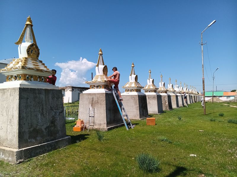 Voyage solidaire : Le temple d’Ulziit a été détruit par les soviétiques. La partie reconstruite nécessite des travaux. Lors du Voyage 2024, nous avons commencé la rénovation et la peinture des stupas qui entourent le temple. Nous manquions de matériel. A son retour en France, le groupe a mis en œuvre des actions (projections film, ventes…) afin de récolter des fonds pour l’achat de matériel pour 2025 (escabeaux, pinceaux…). D’autres actions sont mises en œuvres pour 2026.